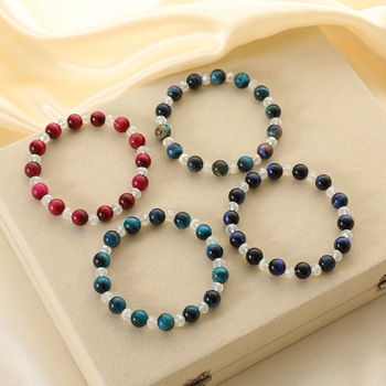 مجوهرات يدوية الصنع 8 سوار شفاء الأحجار الكريمة الملونة عين النمر الكريستال واضحة الخرز الطبيعي الخرز الخرز