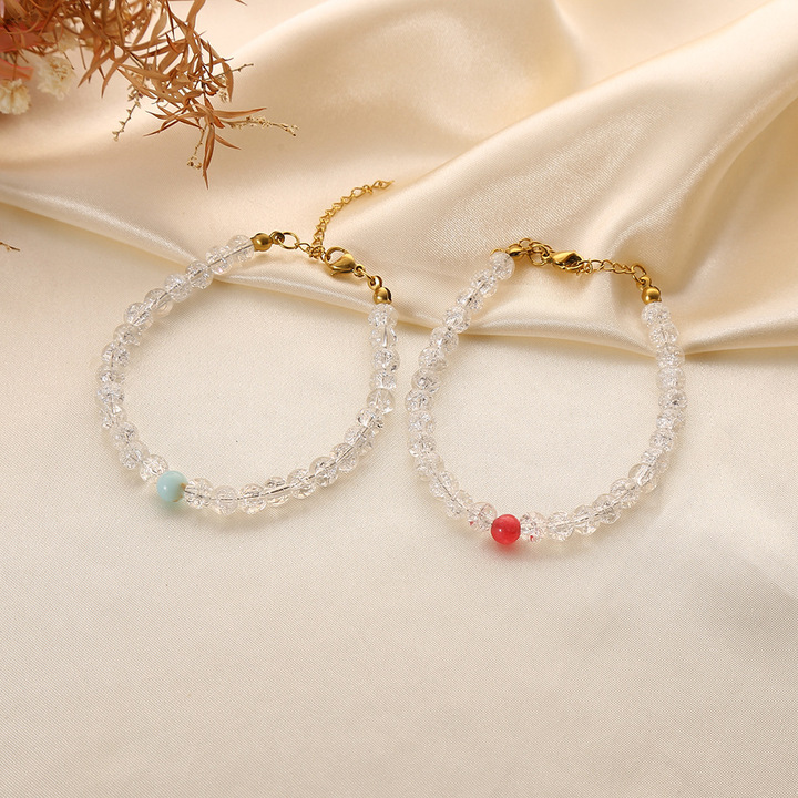 2025 nuevo 6mm hecho a mano ráfaga de cristal agrietado pulsera de cuentas minimalista BFF joyería para mujeres