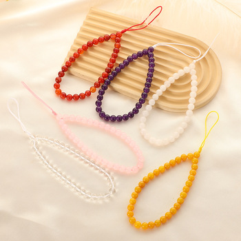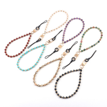 2025 New Natural Stone Amethyst Beaded Phone Lanyard - Anti-Loss DIY Phone Strap & Creative Bag Charm for Wholesale
