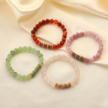 Vintage Design Brown Wood Beads estiramento Pulseira 6mm Gemstone Ágata Pedra Natural Frisado Pulseiras para Homens e Mulheres