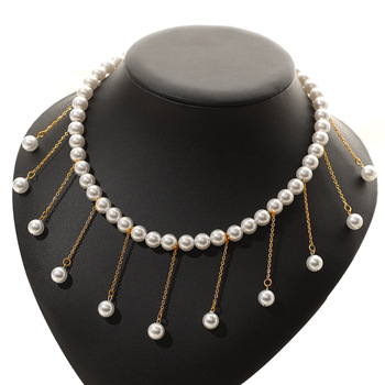 Zarif püskül inci gerdanlık kolye boncuklu tasarım ve lüks zincir moda takı ile kadınlar için parti giymek