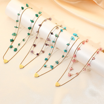 İlk kolye ile kadınlar için katmanlı doğal taş kolye paslanmaz çelik zincir zarif el yapımı takı hediye