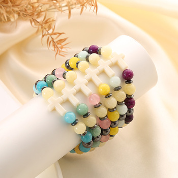 Sıcak satış çapraz Charm streç bilezik 8mm şifa taş akik doğal taş boncuklu bilezikler erkekler ve kadınlar için