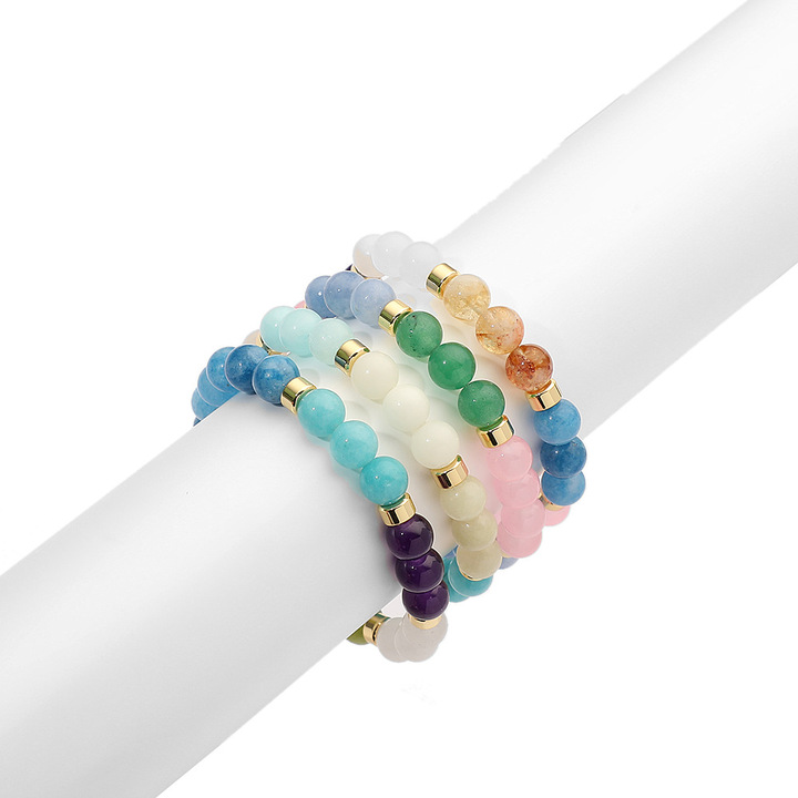 Toptan kadınlar takı kristal gül kuvars streç dostluk bilezik renkli doğal taş boncuklu bilezikler